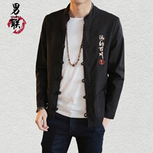 2017春季男士复古夹克休闲外套中国风海纳百川刺绣盘扣潮流男