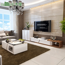 小木屋 茶几电视柜组合 小户型现代简约 客厅白色钢琴烤漆带LED灯