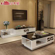 小木屋 成套家具 客厅茶几电视柜组合套装 钢化玻璃多功能可伸缩