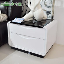 卧室简约烤漆床头柜两抽屉收纳床边柜钢化玻璃台面圆角床头小柜子