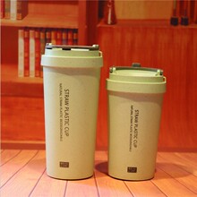 创意秸秆料随手杯 办公双层便携提手水杯子 学生情侣麦香咖啡杯