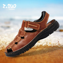 走索男士真皮拖鞋男韩版包头半拖鞋男沙滩鞋洞洞凉拖鞋夏季男潮流