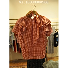 韩国代购2017春装新款女装THE COUPLE 女式荷叶边宽松格子衬衫女