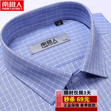 专柜正品南极人男士长袖衬衫春季商务职业工装正装免烫格子衬衣男