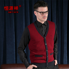 恒源祥2016男士秋冬款v领羊毛背心 纯羊毛开衫 爸爸装加厚马甲