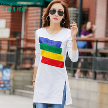 春秋韩版百搭上衣中长款t恤女宽松显瘦体恤棉质圆领长袖打底衫潮