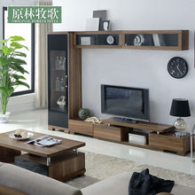 原林牧歌现代简约可伸缩电视柜 组合客厅吊柜隔板影视墙茶几组合