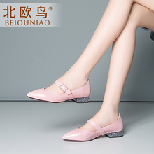 2017春季新款休闲真皮尖头平跟单鞋女牛皮水钻平底瓢鞋软底豆豆鞋