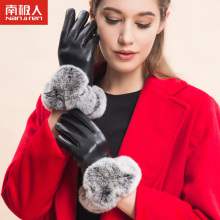 南极人 皮手套女冬季加厚保暖时尚獭兔毛头层羊皮女士开车手套