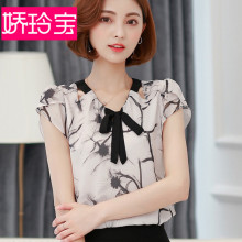 小碎花雪纺衫短袖上衣女夏装2017新款女士时尚喇叭袖衬衫韩版百搭