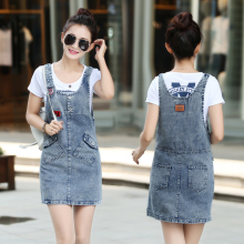 2017夏秋新款女装连衣裙韩版牛仔背带短裙大码宽松显瘦吊带背心裙