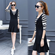 2017新款春款小清新连衣裙春秋条纹韩版显瘦时尚裙子春装女蓬蓬裙