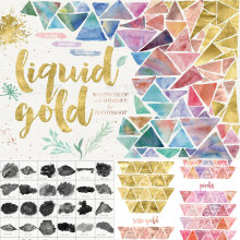 PS预置ABR笔刷样式 ASL水彩金属金色样式 PNG免扣叶子设计素材