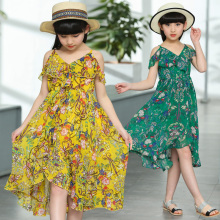 女童连衣裙2017春装新款儿童长裙中大童长袖公主裙碎花长裙沙滩裙