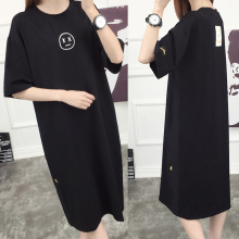 韩国BF风过膝大码加长黑色懒人短袖连衣裙女休闲中长款T恤裙夏潮