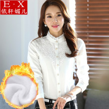 加绒加厚2017春装新款衬衣雪纺衫打底衫女装长袖保暖衬衫蕾丝上衣