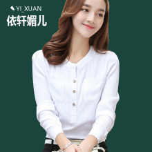 棉麻衬衫女长袖2017春装新款韩范宽松上衣韩版休闲白色麻料衬衣