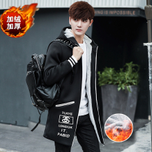 风衣男中长款2016冬季韩版修身学生外套加绒加厚潮冬天帅气大衣男