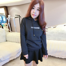 糖糖大码女装尚瘾2016秋冬新款胖mm韩版纯色宽松长袖字母连帽卫衣