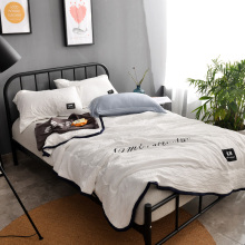 ins韩国水洗棉四件套全棉六件套日式纯色棉白色被套床笠裸睡床品