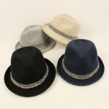 蕾丝彩带卷边小礼帽女秋冬季纯色兔毛针织毛线帽韩版英伦爵士帽子