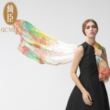 绮臣真丝纱巾长款夏日空调房披肩 杭州特产丝绸纱巾 桑蚕丝丝巾女