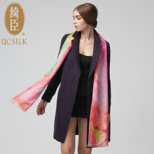 丝巾女 绮臣双层真丝桑蚕丝春秋夏季百搭长款两用披肩 高档围巾