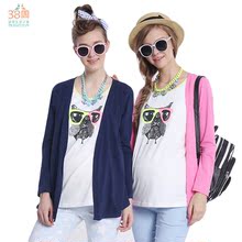 38周孕妇2017春新品假两件哺乳印花T恤秋 韩版开衫长袖上衣