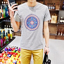 夏季短袖T恤男纯棉圆领印花男士半袖日系韩版修身体恤男装上衣服