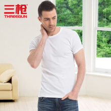 三枪背心男士短袖圆领纯棉打底透气老头衫运动汗衫内衣中老年T恤