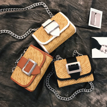 雅婷2017新款时尚单肩包森系链条斜跨日包韩版草编包女包度假小包