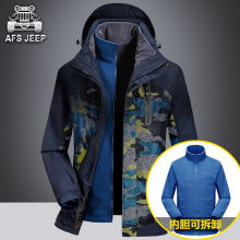AFS JEEP户外冲锋衣男三合一冬季迷彩大码加厚两件套登山服外套