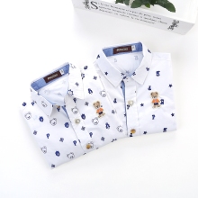 波姆熊男童衬衫长袖2017春季新款小熊翻领儿童纯棉衬衣男