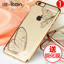 ICON苹果6plus手机壳iphone6透明电镀硬壳超薄水钻奢华女六保护套
