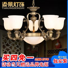 添景灯饰复古铜灯欧式 餐厅吊灯美式仿云石灯具低层高纯铜卧室灯