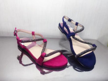 2017新款真皮低跟尖头水钻绑带罗马时装半空包头女单鞋SS71114187