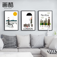城市卡通装饰画北欧客厅挂画创意艺术插画卧室餐厅墙画壁画三联画