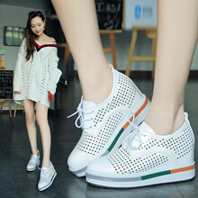 2017春季新款系带镂空小白鞋女松糕厚底透气休闲鞋内增高女鞋学生