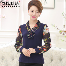 中老年女装夏装衬衫翻领上衣中年妇女秋装40-50妈妈装雪纺长袖t恤
