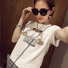 2017韩国夏装新款加菲猫韩版女装大码宽松印花短袖T恤女半截袖女