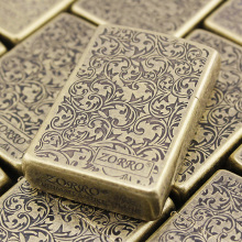 ZORRO佐罗煤油砂轮打火机超薄老式防风双面雕刻唐草正版礼盒装