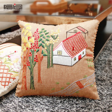 指间 新款客厅卡通精准印花3d十字绣丝带绣抱枕靠垫山里人家