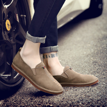 2017夏季男士休闲皮鞋韩版个性潮流运动板鞋软底复古棕色懒人鞋子