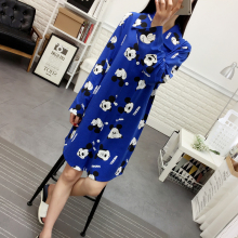 春秋季女士 长袖 睡裙加肥加大码加长学生卡通胖MM孕妇长裙家居服
