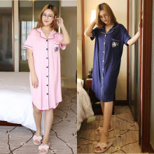 莫代尔短袖睡裙 夏季韩版 加肥加大开扣加长公主学生甜美宽松睡裙
