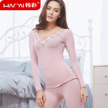 HACAI/韩彩女士莫代尔棉保暖内衣性感大v低领打底秋衣秋裤套装薄