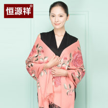 恒源祥正品秋冬羊毛女士围巾流苏长款加大披肩女绣花羊毛围巾