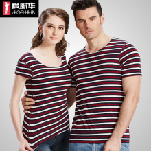 爱歌华清仓情侣内衣条纹短袖t恤莫代尔夏季无痕v领男女打底衫汗衫