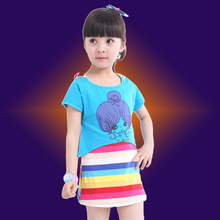 巴拉巴拉雁童装女童2017夏装套装中大童条纹带帽背心彩虹裙两件套