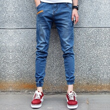2017春季男装牛仔裤九分裤日系流行小脚猫抓男式束脚裤潮松紧裤脚